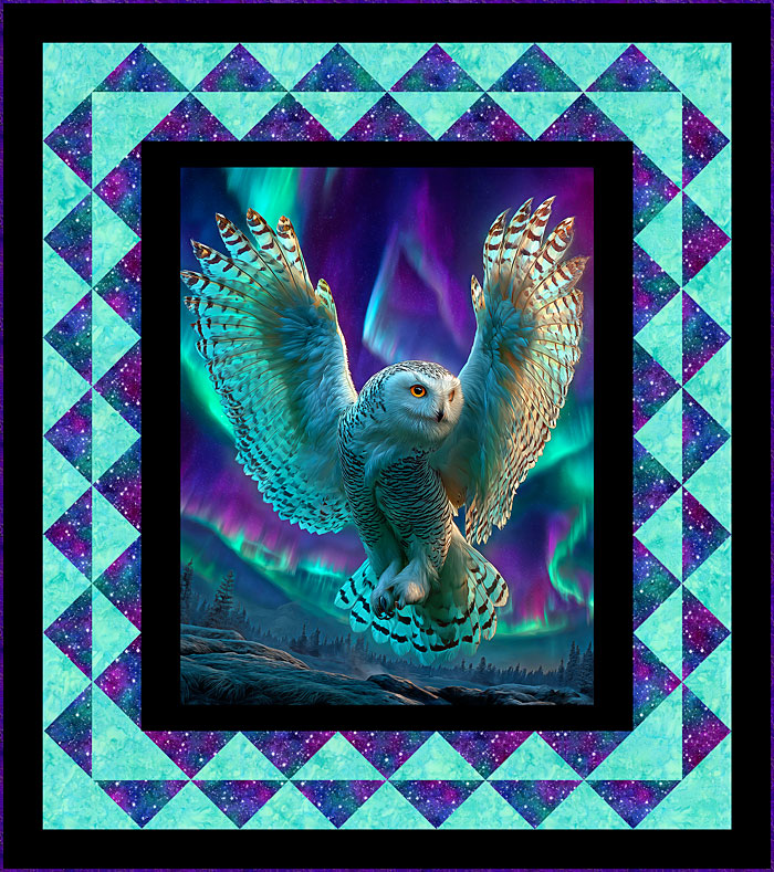 This week’s exclusive Free Quilt Pattern features our new Aurora Owl panel, with a snowy owl flying beneath a dazzling display of northern lights color.
