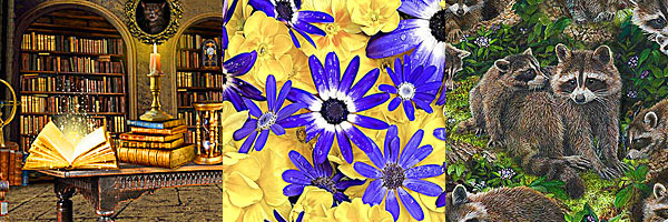 Also this week I am delighted with the “Artist’s Desk” and “Mystic Library” collections, featuring artist supplies and vintage books – 2 of my favorite collectibles, besides fabric! *wink* To me, these kinds of novelty fabrics make the best gift quilts, garments, and home dec projects like curtains. We have many customers who use these types of prints to make camp shirts for the sassy dresser in their life. I think the Artist prints would make perfect ‘cafe curtains’ for a studio. As our Sewing/Maker Universe continues to expand, we love seeing the crazy/genius creations you all dream up with these unique and very collectible fabric designs! Send us photos of your completed projects!