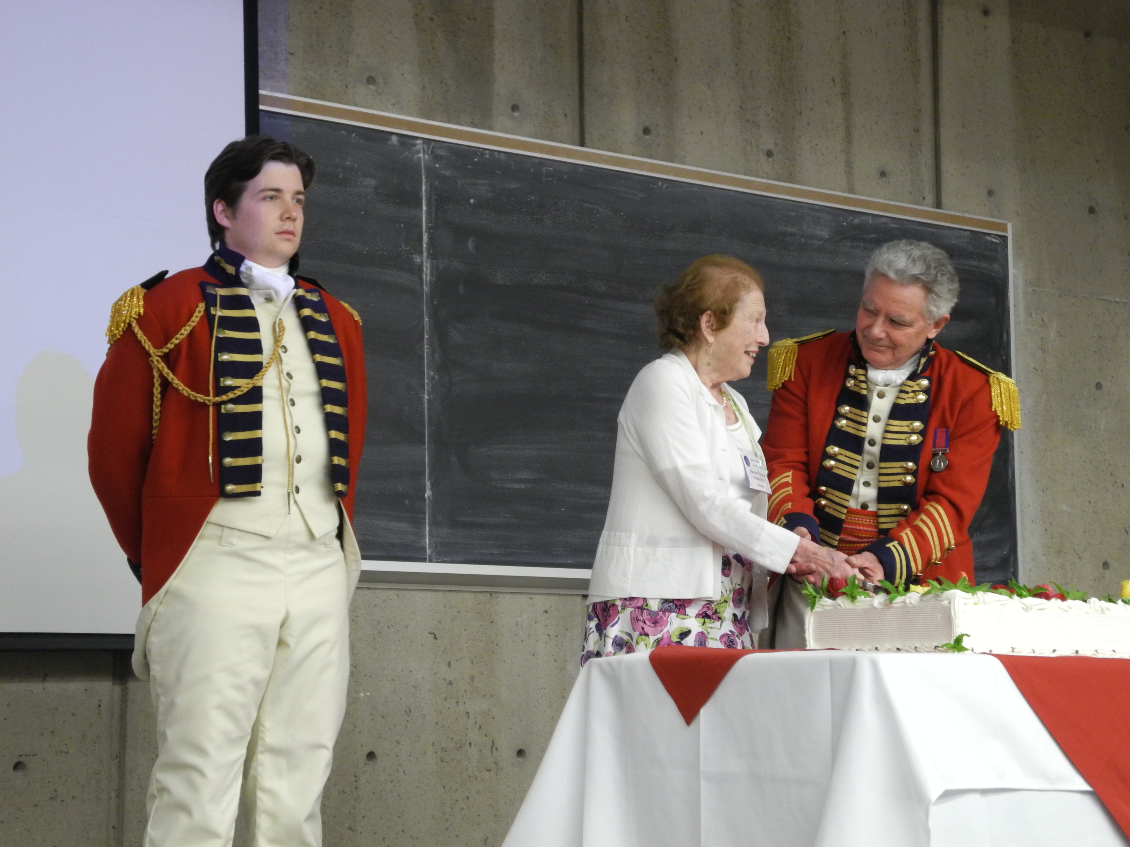 Tonight I went to the award ceremony for the Quilt Canada conference here at Brock College in St Catherine's. We were visited by Captain Brock who then helped Marilyn Walker to cut an anniversary cake.