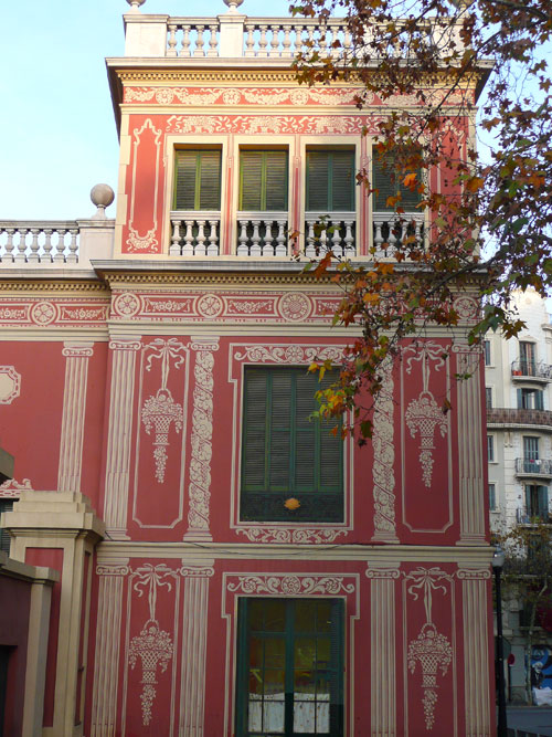 In the case of this Blushing Pink stucco building, with raised Ivory floral and faux architectural embellishments…it is a school in the heart of the city. Can you imagine being a child and attending a school in a building such as this?