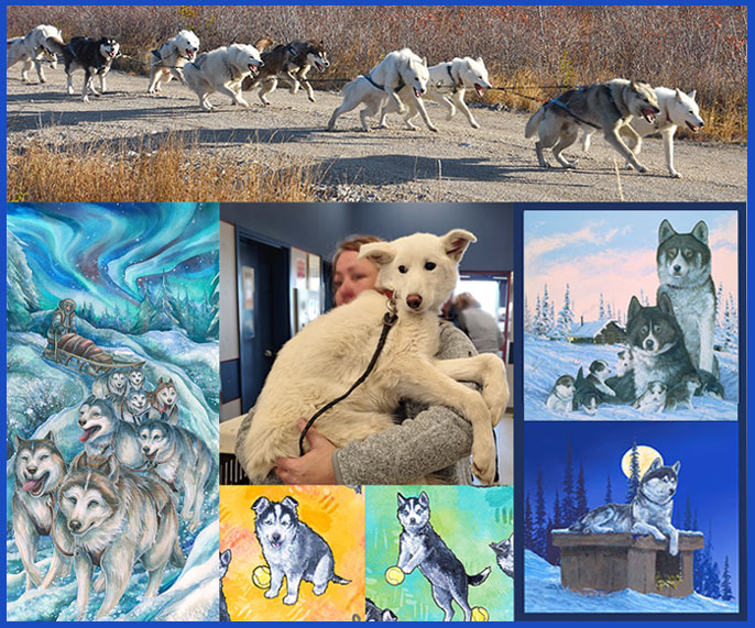These dogs are born in the winter, and live their lives outside in the Sub-Arctic weather. They love to PULL, and when they know they are about to go on a sled run, they howl with excitement. Just like a Border Collie has to herd something, a sled dog has to pull something. You can see this in my top photo.