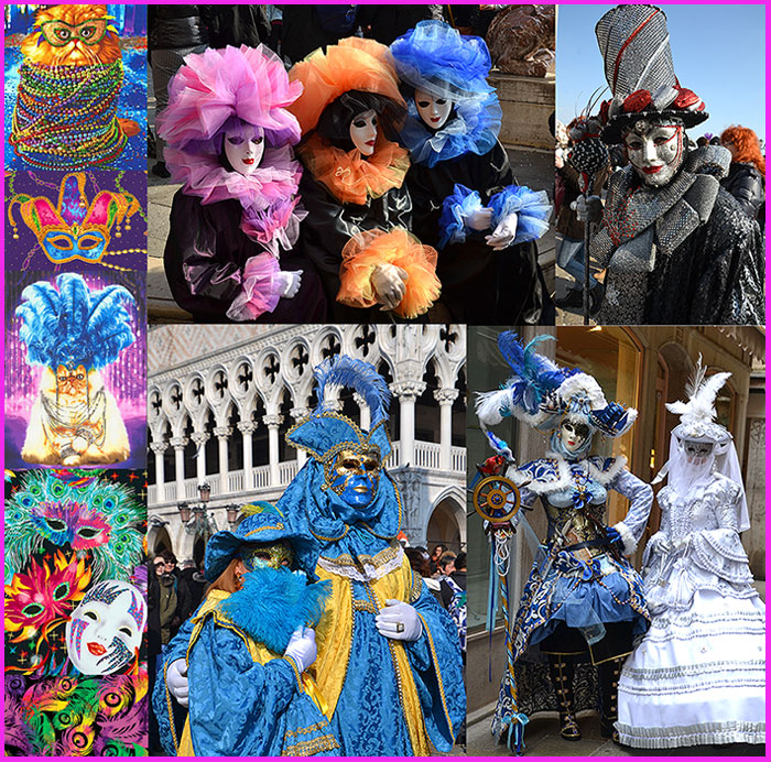 This weekend I was able to check off a big one on the Bucket List – I was in Venice for Carnivale to photograph the costumes! I have been fascinated with the masks and historic ensembles that are worn by Venetians and visitors alike, during the Italian version of our Mardi Gras. Besides the collage above, I’ve uploaded lots of photos for you to enjoy, so please join my celebration on my photo page!
