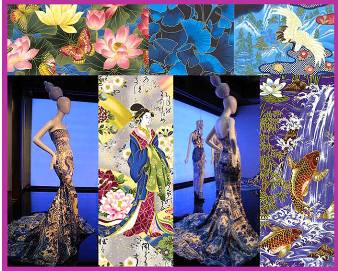 We have many fabrics which are distinctly Japanese (geishas, kimonos, sushi, etc.) but many Asian fabrics have symbolic meanings in several Asian cultures. Chrysanthemums for instance represent life and rebirth, so they are popular themes for baby showers and birthdays.