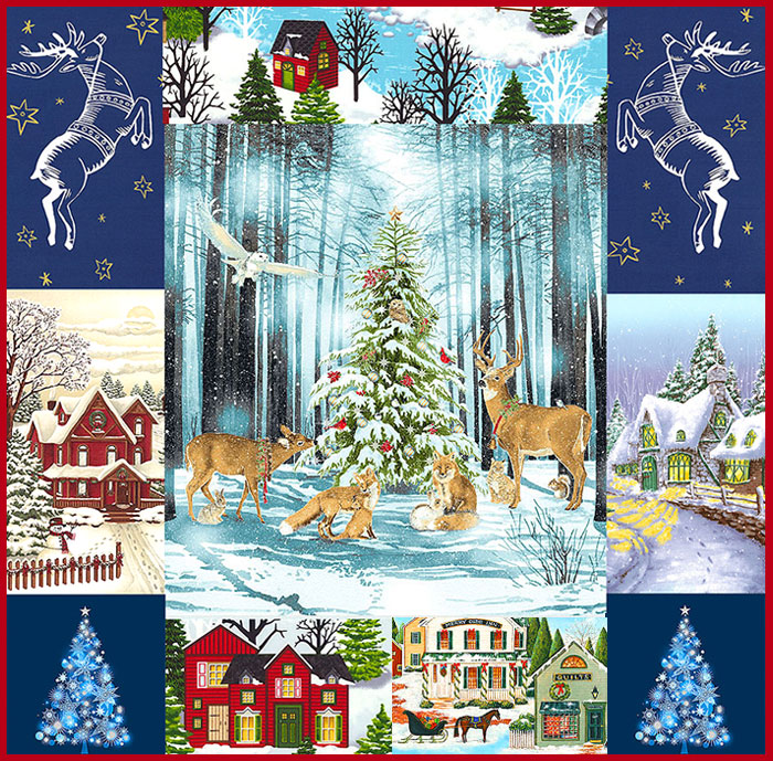 These days we have the relative luxury of buying beautiful new fabrics instead of using old clothing scraps, and we also have the luxury of making artistic quilts instead of just utilitarian quilts. So we can not just survive Winter, but we can now celebrate Winter. This fabric collage above is my celebration of the frosty season that inspires us to sew and create while the weather outside is frightful….