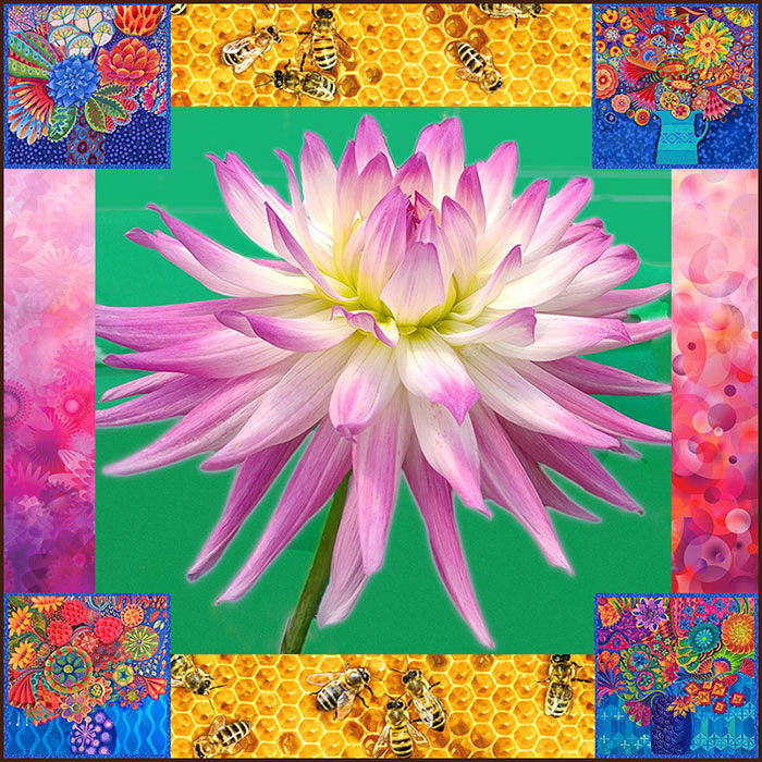 Here are some digital printed fabrics from our exclusive collection, with Dahlias I photographed a few years ago. Jeanie’s “Dream Big” Digital Dahlias have been a runaway best-seller in the last year. Dahlias are floral fireworks that celebrate the late days of summer, making us gasp at their symmetry and perfection.