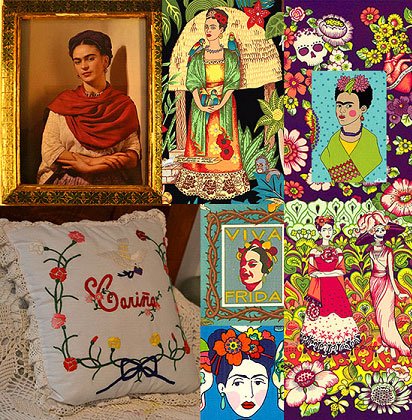 The collage above features Frida Kahlo themed fabrics by Alexander Henry.