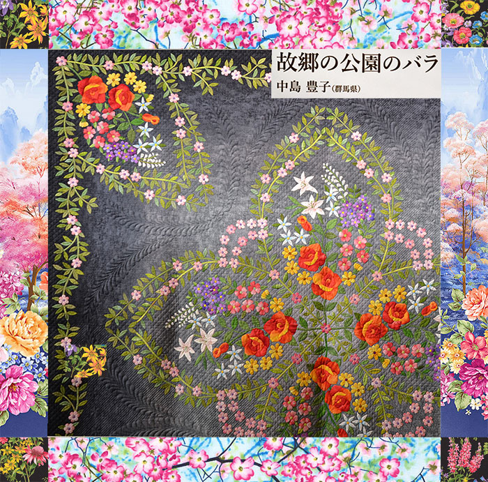 Having returned home from Tokyo Tuesday afternoon, this week’s Midweek Creative Nudge will be just that….a quick glimpse into the beauty I saw at the Tokyo Quilt Festival. This is a detail of a lovely applique quilt in the Traditional category, that may have been overlooked by some. The artist’s name sadly, was not spelled out on the name tag, so I am including an image of the characters so she will have credit where it is due!
