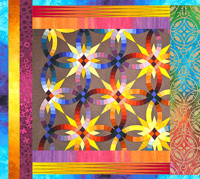 Modern and traditional quilters are exploring the creative boundaries of beloved favorite patterns like the Wedding Ring. Judy Niemeyer’s Wedding Ring patterns have been favorites at eQuilter for years, as have Darlene Zimmerman’s plastic templates for Wedding Ring blocks. Two years ago Victoria Findlay-Wolfe’s Wedding Ring interpretation took best of show at the first QuiltCon in Austin Texas.