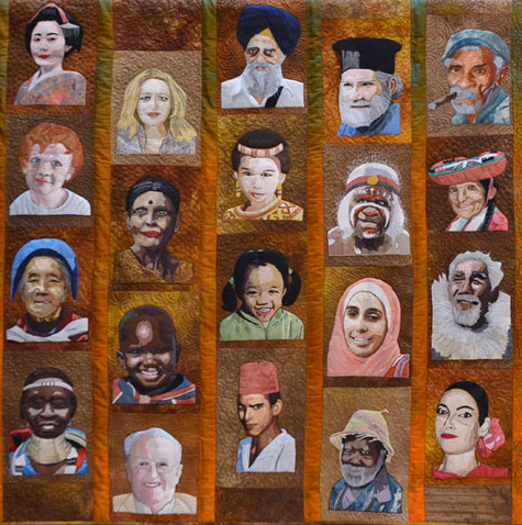 What an amazing quilt! I could hardly stop looking at it; the breadth of humanity is expressed in the facial expressions as well as skin color, garments, and cultural differences — all perfectly expressed in fabric and thread! Stunning. Thanks for sharing.