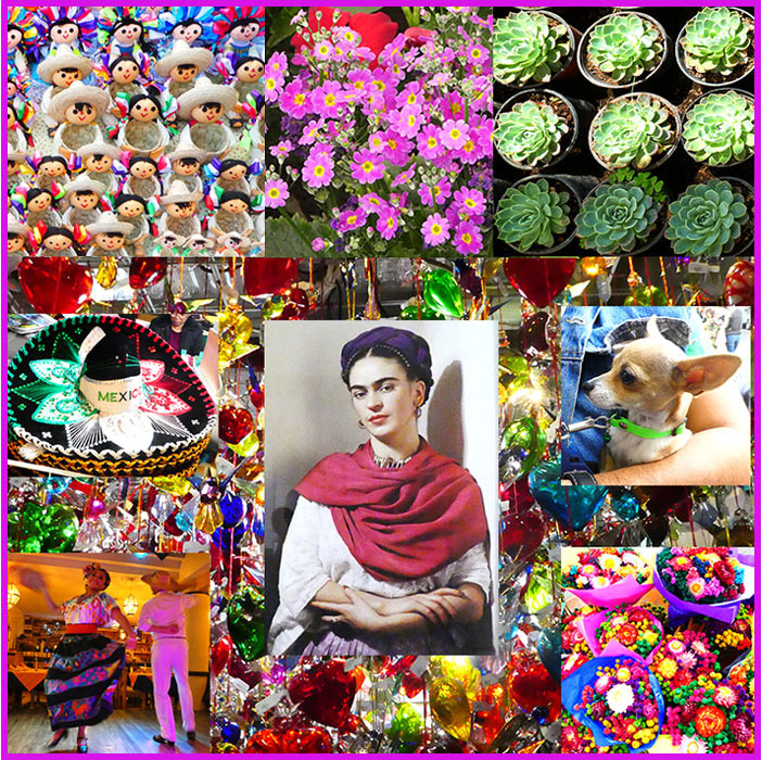 My trip to Mexico last month was a great inspiration, and I loved seeing how Mexican art quilters are developing their fiber art, inspired by the colors of their country. So tonight I wanted to share a photo collage of images captured in Mexico City, because I found these colors so full of joy and life!