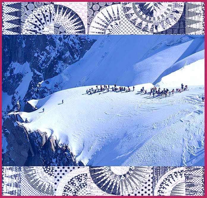 It is inspired by the classic New York Beauty quilt design, but it actually reminded me of the snowy curves and jagged dark rocks of Mont-Blanc. Does it remind you of a New York skyline, or snow-bound rocky peaks?