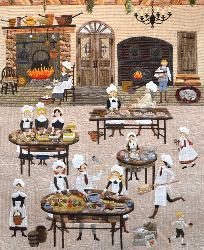 Since I don’t have access to the internet tonight, I am sharing a detail shot of a fun quilt I saw in Tokyo in January. It is ‘The Chocolate Factory’ by Osami Gonohe, and I thought you’d enjoy these adorable little chefs in their big hats, with lots of cute details. We know that quilters love Chocolate, Cats, Wine and Coffee. Tonight I met someone person for the first time, who is a member of my Facebook page ‘Luana’s Fabriholic Kitty Club‘, which is where quilters go whose friends and family are mad at them for posting too many Cat memes. If you are in danger of becoming a Crazy Cat Lady, come join my Fabriholic Kitty Club!