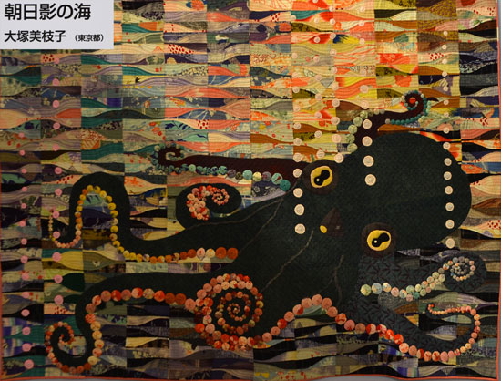 piecing with vintage silks, and intricate appliqued dots. This large octopus
