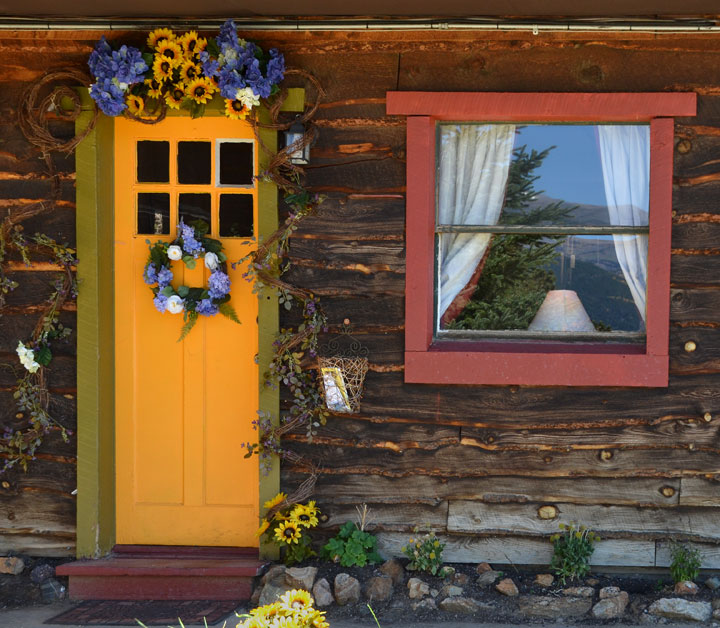 I love this photo because the high peaks of the Continental Divide are reflected in the window, but also because you have the feeling that a hobbit grandma could open the door any minute.
