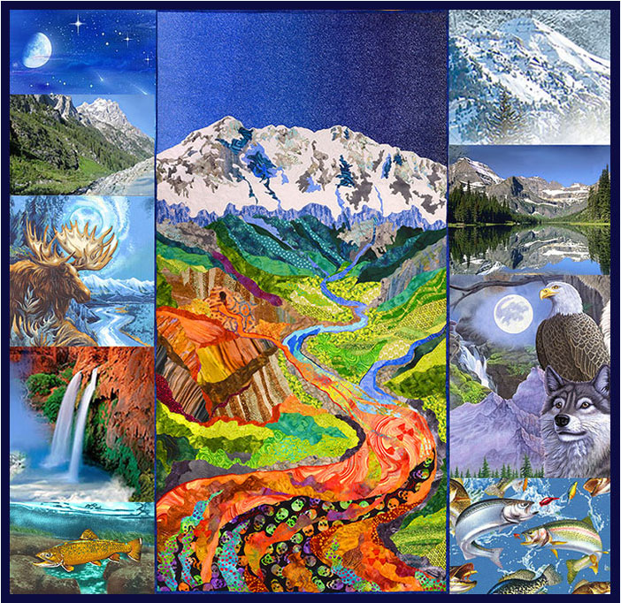 This quilt was made on my BERNINA 790 machine, with our exclusive eQuilter sets of Aurifil threads, and fabrics from the eQuilter Scrap Pile! You can see that I’ve set it in a collage of Mountain, Wildlife and River fabrics from eQuilter. I had an absolute blast making this quilt, and I am excited to send it off on its World tour which will include some other UN venues!