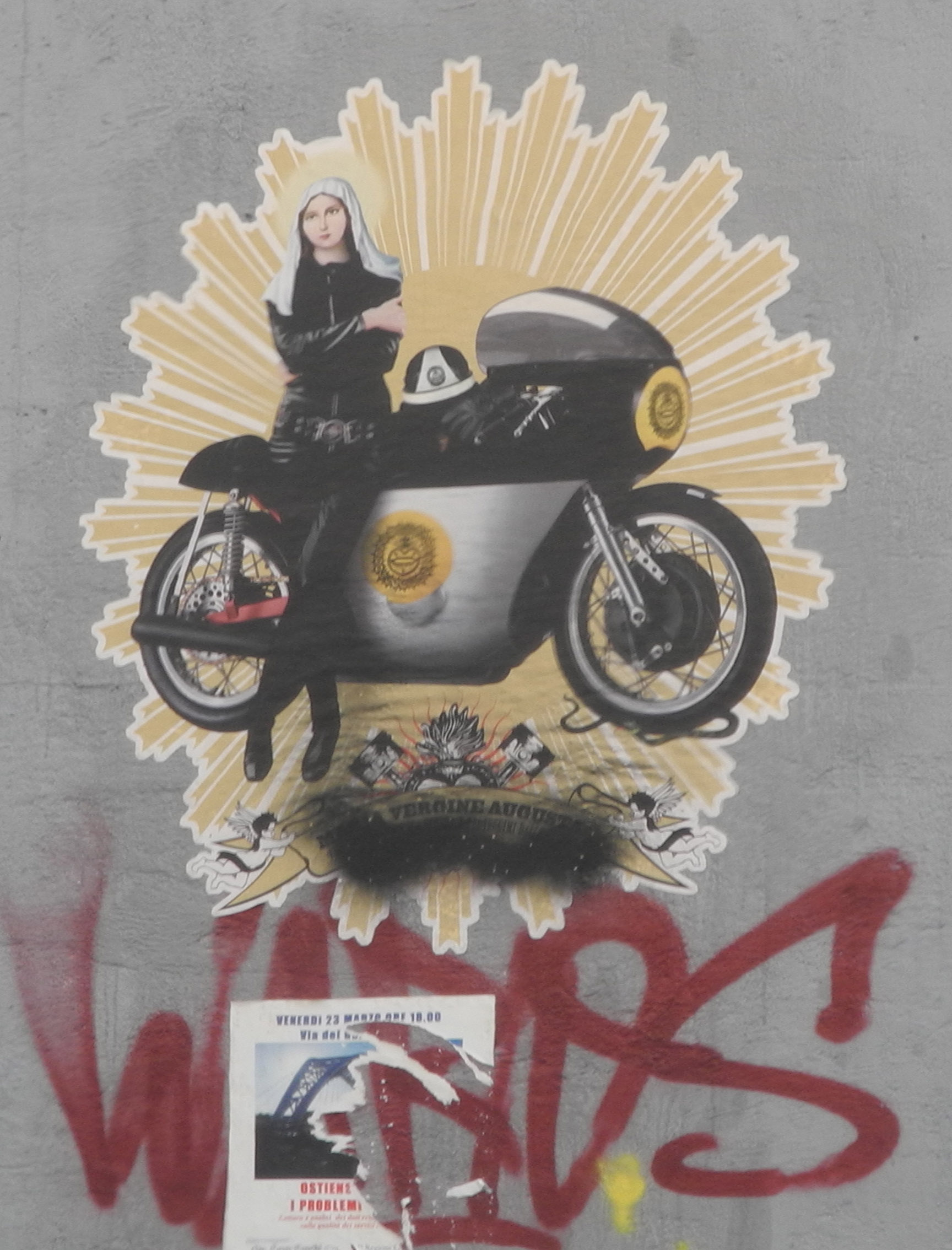 Thank you for the photo of the Roman graffiti and madonna as motorcycle policewoman. I love your eye.