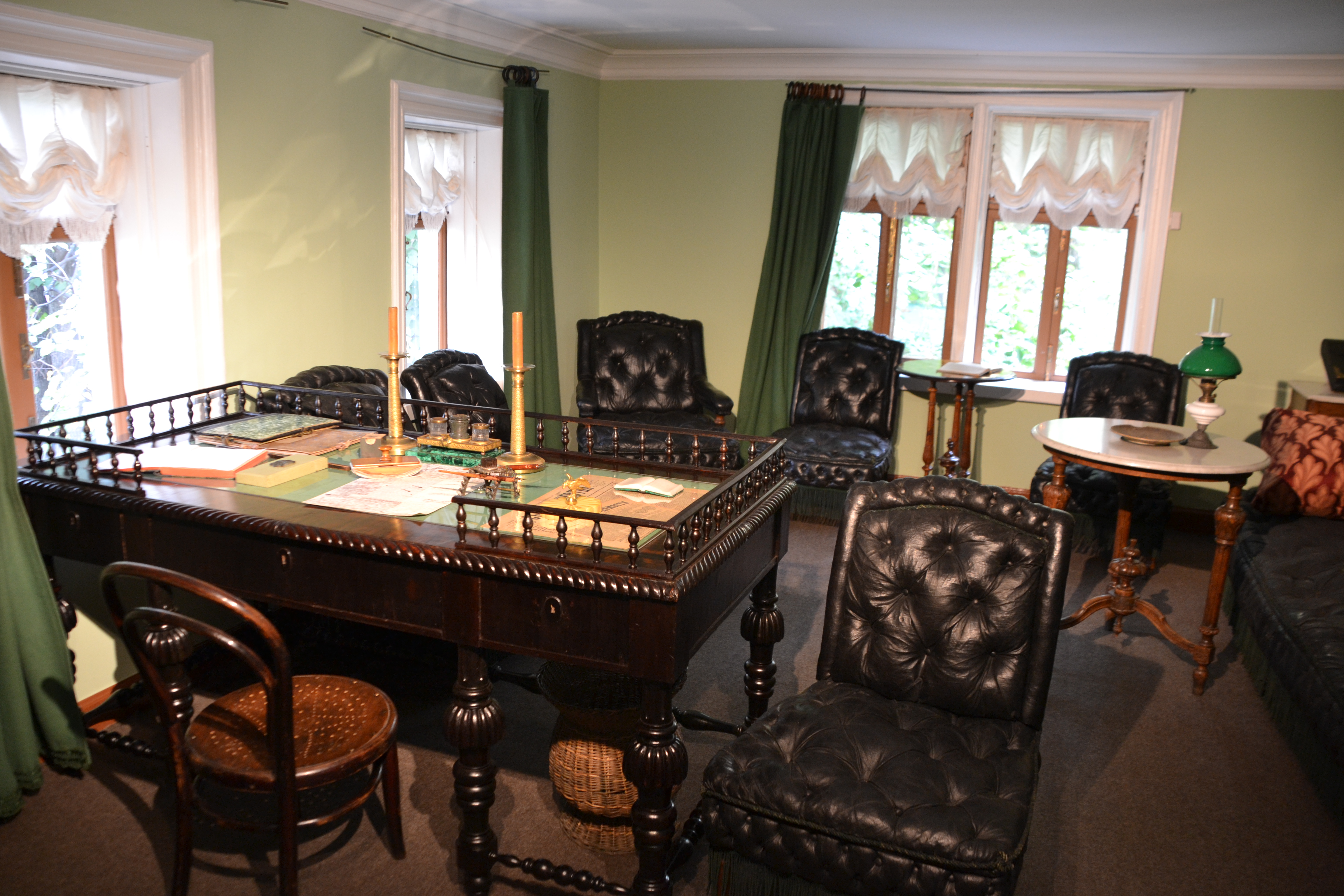 In the back you can look into Tolstoy's study, and see the desk where he wrote his stories.
