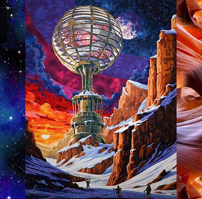 This week I am sharing the work of award-winning artist Kestrel Michaud, whose latest work is featured at the entrance of the Quilt National exhibit, at the Dairy Barn in Athens Ohio. If you can go see this exhibit in person, I urge you to make the trip!