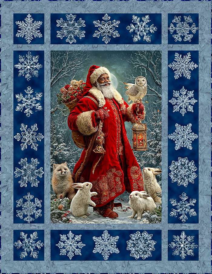 Tonight’s Free eQuilter pattern features our new beloved Father Christmas panel, depicting Santa spreading joy and cheer among the wild animals of the forest.