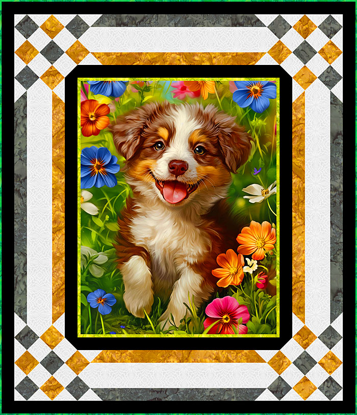 Tonight’s Free eQuilter Pattern features our exclusive playful Australian Shepherd puppy, set in the garden foliage.