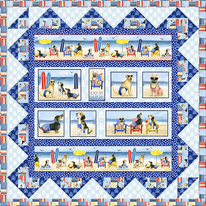 This week’s Free Quilt Pattern is a Beach Party with Patriotic Pups, enjoying a day by the water on this unofficial first day of the Summer Vacation season.