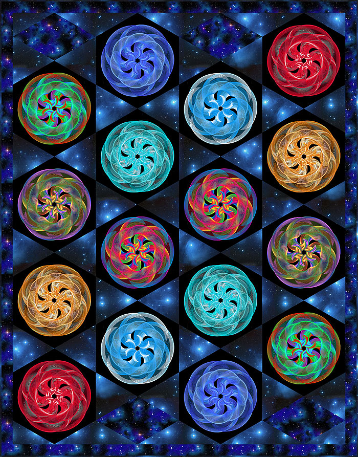 Here’s a special Weekend Free Quilt Pattern for those who are cosmically inclined – a flock of Swirling Mandalas in a Starry Sky.