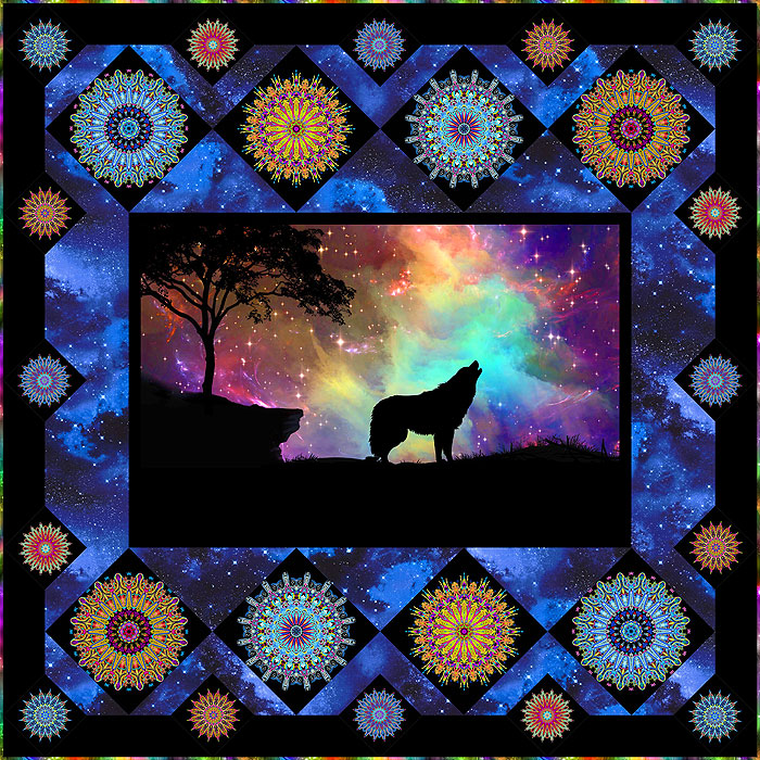 This week’s Free Quilt Pattern features an eQuilter Exclusive digital printed panel, with a dazzling image of a wolf silhouette against an aurora borealis sky.