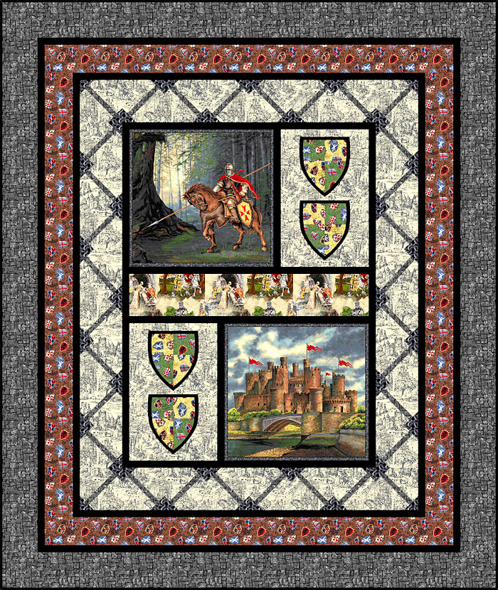 Escape to another time and place with this week’s Free Quilt Pattern, featuring a fantastic panel with a medieval knight in armor, a castle fortress and a graceful stone bridge.