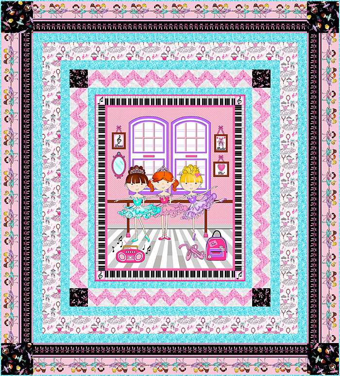 This delightful Free Quilt Pattern features a central panel of 3 Little Ballerinas…and the first time we saw these cutie-pies, there was a simultaneous “Awwww….how adorable” in the room.