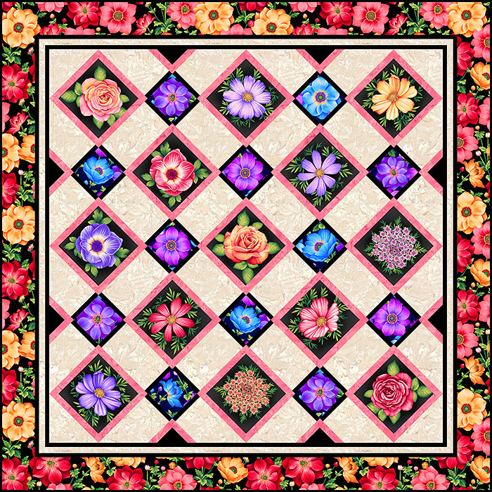 ‘Tis the season to celebrate the opulence of Nature, as trees and flowers are bursting into bloom in a rainbow of colors – and this week’s Free Quilt Pattern will place you right in the center of a fantastic floral garden!