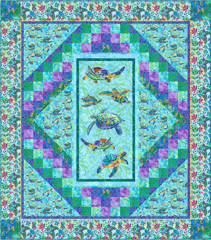 …featuring the ‘Calypso Turtles’ collection by Ro Gregg of Paintbrush Studio for Fabri-Quilt.