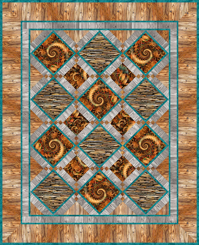 This week’s exclusive eQuilter Free Quilt Pattern is visual poetry on the theme of Stone and Wood, with some exquisite Nature-inspired Fractals to pull it all together.