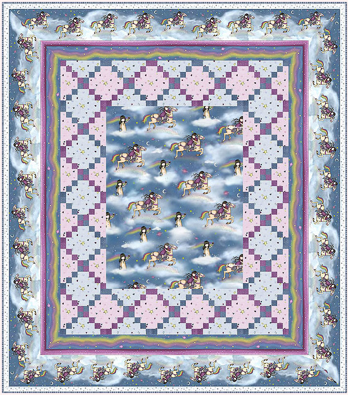 in this 59″ x 67″ quilt, you or your favorite little person can hop on that magical pony