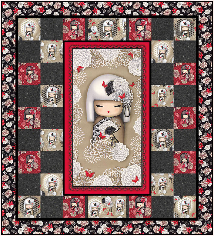 This week’s exclusive eQuilter Free Pattern features a beautiful Nobuko Kokeshi panel, surrounded by smaller, decorative Kokeshi dolls. The 54″ x 60″ collectable quilt is sure to bring luck and good fortune to friends and family!