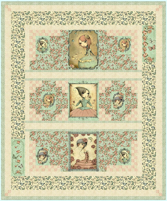 Celebrate the beauty of Mirabelle with this enchanting quilt using the whimsical designs of Santoro’s Girlhood Dream illustrations. The design features lovely portrait frames in soft, vintage colors and delicate detail, and is sure to be cherished by everyone young at heart.