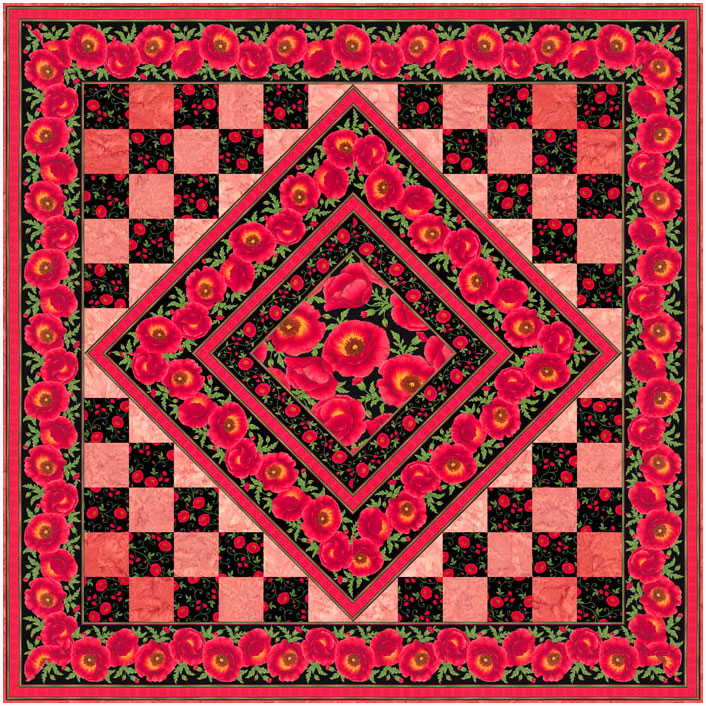 This week’s exclusive eQuilter Free Pattern showcases the exquisitely detailed Red Poppies by artist Chong-A Hwang, on a dramatic solid black ground.