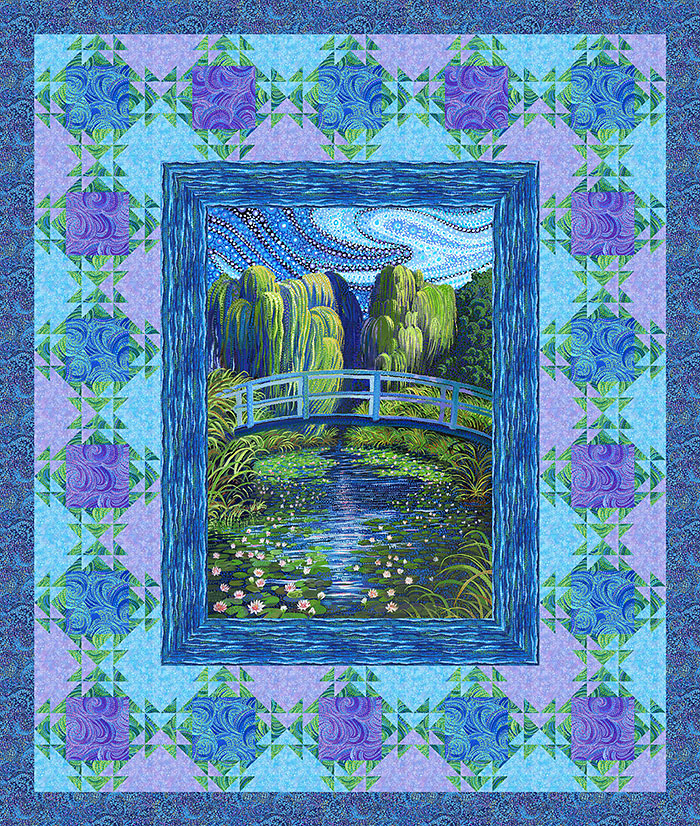 Enter the dreamy world of Impressionist Water Gardens, in this week’s exclusive eQuilter Free Quilt Pattern, featuring a central landscape panel with a pointillist interpretation of Monet’s personal Lily Ponds at Giverny in France.
