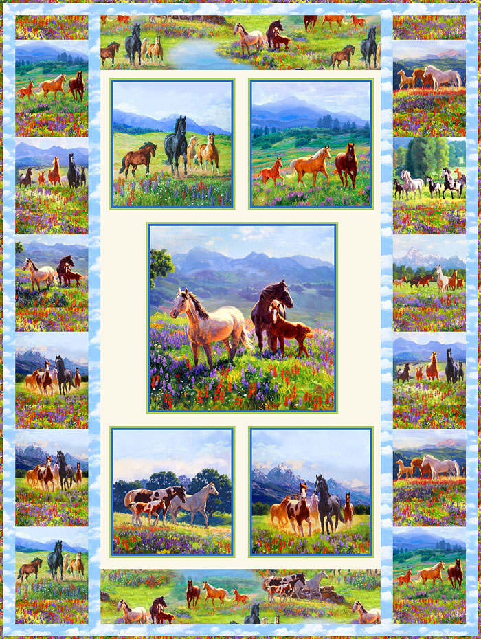 This week’s eQuilter Free Pattern will put a big smile on your face, with herds of wild horses grazing in a high mountain meadow…foals gamboling in fields of wild flowers…evoking the romance of mustangs running wild and free.
