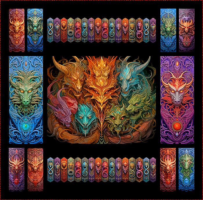 To make this magnificent 79″ x 78″ design, you’ll begin with the dramatic 36″ x 44″ panel, and then add the large-scale dragon icon triptych panel, totem dragon icon panel and dragon icon stripes to display a fierce dragon empire! The bright hues are accentuated by the solid black background.