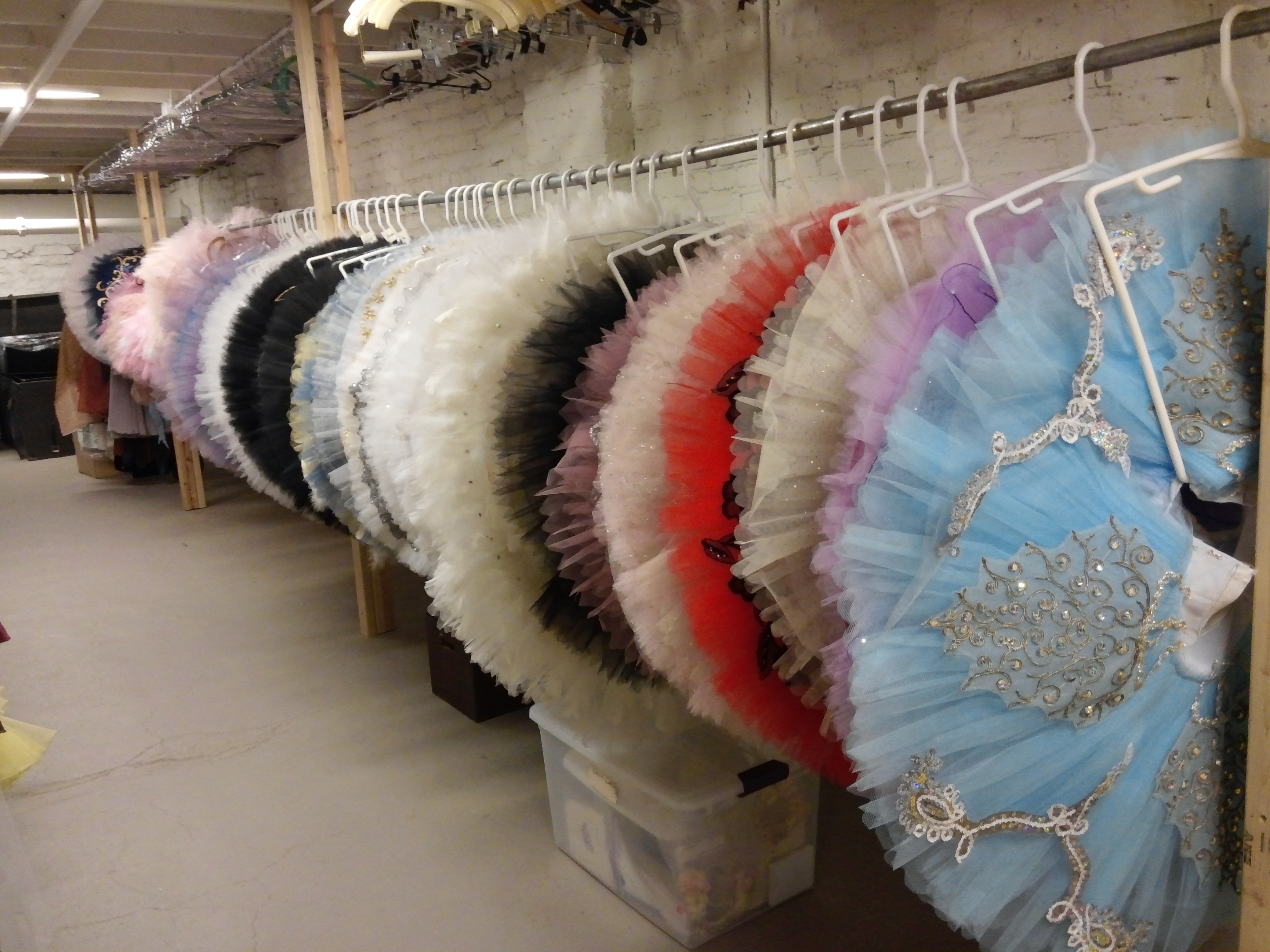 We finished with a tour of the huge costume department in the basement of the building. We stopped in the sewing and fitting section, stocked with Bernina machines of course, then walked down the center aisle with row after row of hundreds and ultimately thousands of costumes. These costumes are rented out to other ballet companies when not in use, and each costume has to be custom fit to the current dancer occupying that role. You can just imagine how excited I was to see the long rows of costume history all around me.