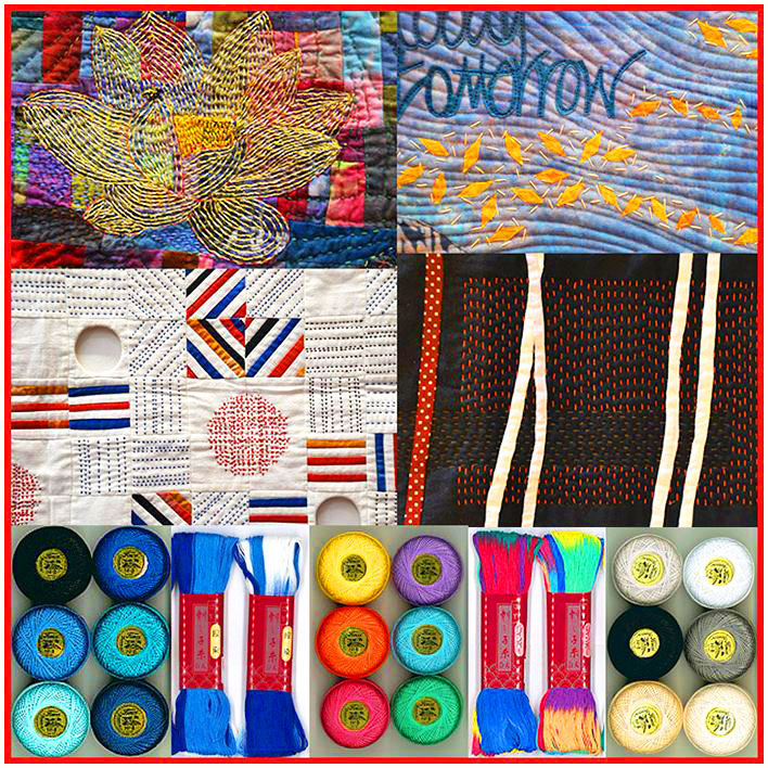 So I came home and placed orders for lots of specialty big-stitch threads because I hear the rumbling on a distant horizon…this trend is so refreshing and FUN, and I know you’ll want to try adding some of this to your next project!