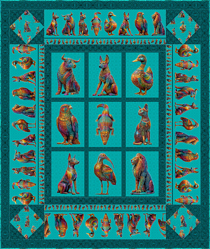 Tonight’s Free eQuilter pattern features our new Iridescent Egyptian Animal fabrics, depicting Ancient and elegant statues against an intricate, textured background.