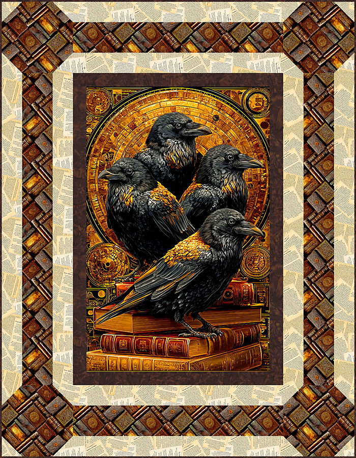 Tonight’s Free eQuilter Pattern features our Best-Selling Library Raven panel, depicting scholarly ravens atop a stack of elegant tomes.