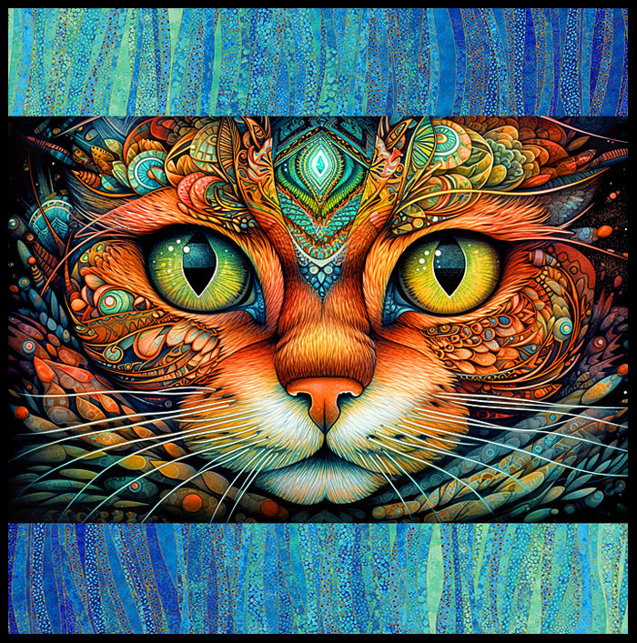 Ok those are a couple of groaners, but I hope you will enjoy our latest shipment of exclusive Kitty Panels, with a choice of themes and color palettes for all cat lovers.