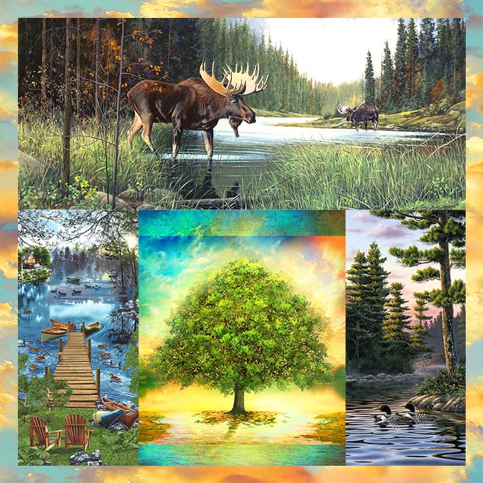 We have found over the last 21 years that Nature-themed fabrics are often the most popular. Wildlife, flowers, forest, birds, ocean, sky, fish and bugs make up a huge percentage of the fabrics that we cut and ship out to you. We know that when it is snowy and cold outside, these images bring us joy and comfort. When we look at trees, water, and mountains, it brings a sense of peace. We can almost hear the water lapping on the shore, the birds calling from the forest, and the wind rustling the leaves. Just as a scent can bring back a childhood memory, the colors and images of happy times can be captured in a quilt when we choose fabrics that touch those memories.