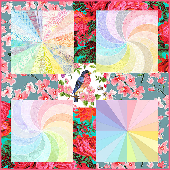 So I am going to focus on SPRING and that means pastels, blossoms, and songbirds. We’ve been busy stocking up on pastel solids, blenders, batiks and hand-dyes for your early Spring season. We’ve also created several fat quarter packets in these dreamy pastel colors, just in case you are missing this important section of values in your stash.