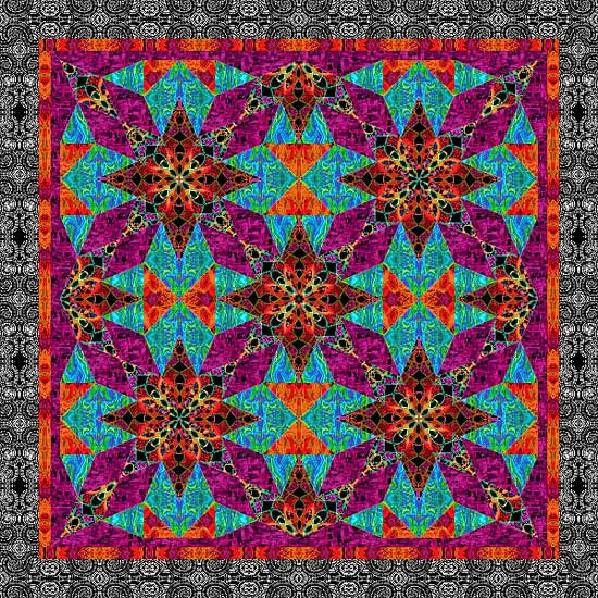 Gazing into the symmetry of this 60" x 60" quilt design, you'll see exploding stars and cosmic galaxies…to boldly go where no quilter has gone before!