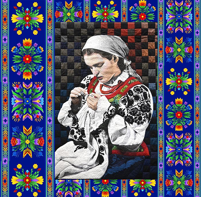 “Urzecze is a suburban micro-region neara Warsaw, whose material culture has almost completely disappeared. My family has lived here for generations. I decided to immortalize on a quilt, a girl in traditional folk costume from this region. I hope this will help preserve the heritage of my ancestors.”