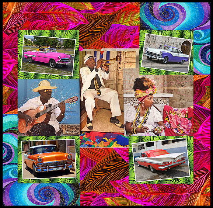 | Can I tell you a secret? There is no such thing as Creative Block. Somewhere in our journey we are told that this is a ‘thing’ and many of us believe it. But…do you remember the joy you felt in elementary school when it was time for art class? That is our natural state of being. Expressing Joy, Life, and Creativity from our heart and soul. With a giggle and lots of smiles. Think of Finger Painting. Yes we have times when we are exhausted, when we are sad or stressed, when we are between creative cycles and we might be tempted to call it Creative Block. But don’t let it stop you. The creative cycle is like the Circle of Life. It just keeps flowing, turning, just like rising and setting of the Sun each day. Just take a breath. That next inspiration is always right around the corner. I have called myself an artist since I was a little kid, and I am so lucky nobody ever tried to talk me out of it as I grew to adulthood. It is never too late to see yourself as a creative person, as an artist, as a maker. Maybe you need to keep a notebook to write down the things that jump-start your creative juices. Maybe you just push those buttons automatically, without even thinking. Either way, it is all valid. We all have a creative Inner Child that wants to come out to play. And you know what? That playful child is also capable of healing us on a very deep level. So I am just reminding you…this is your Truth. Don’t let anybody take that away from you. One of my sure-fire creative warm-ups is putting on some favorite music. Usually it is music that I have heard while traveling somewhere magical. The Salsa music (Buena Vista Social Club) takes me back to Cuba. The Opera (Puccini) takes me back to Italy. The Spanish guitar – to Andalusia. Ladysmith Black Mombazo and Miriam Makeba – South Africa. The fiddle music takes me back to several countries! (Ireland, Scotland, Sweden, Czech Republic, Cape Breton/Nova Scotia…) What is your big Creative Button that you can push when you get back into your studio or sewing space? Speaking of Cuba, that seems to be the theme of the week. I have printed out some of my photos from Cuba on stretched canvas, and added some acrylic paint pen flourishes, for a fundraiser at our local Boulder Philharmonic this week. (See the 3 figure images above.) Then the reprint of my Cuban Cars fabric came back into stock (from photos of Retro Cars that I took in Cuba). And then…it was announced that Americans can start to travel to Cuba again. Yay! (Should I lead one more trip to Cuba?) This Saturday I am giving a trend presentation for the Colorado Quilt Council. (CQC – our state guild) I’ll be giving that lecture via Zoom from the International Quilt Museum in Lincoln Nebraska. If you are a Colorado quilter, be sure to watch for the Zoom link on the CQC website or newsletter, and join us at 10 am MDT. Sharing your love of fabric, Luana and Paul See Luana’s Flickr Photo Pages for travel images, watch our videos, or follow us on Facebook. |