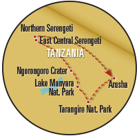 Days 2–4: East Central Serengeti—Namiri Plains The legendary Serengeti derives its name from a Maasai word meaning “endless plains.” We fly to Serengeti National Park, where vistas of golden savanna stretching to the horizon beneath deep blue skies provide iconic images of Africa. Meeting our safari vehicles and drivers, we set out on our first wildlife drive.